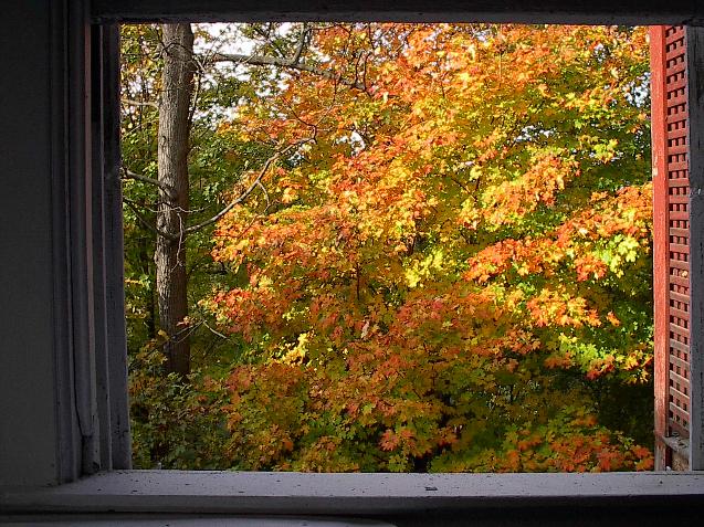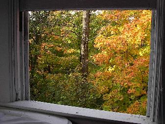 | What you see from you own window turns all red. Then white, then fresh green, and then deep green. Oh, you can see deers, squirrels, chipmonks, lacoons and fireflys from here! You do not see humans and cars from this window. The air from the window is very fresh, as you are facing a deep gorge without any road or house in front of you. |