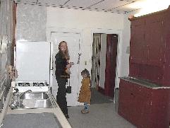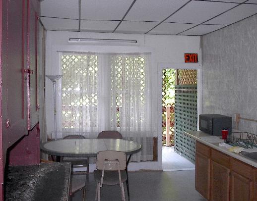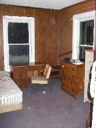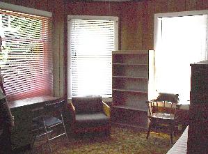 | *It has 6 bedrooms, sharing a kitchen and a bathroom. *All the rooms have basic furniture (single bed, table, chair) *All rooms have high ceiling, which is a beauty of an old house. *Good views at corner rooms.*Smoking discouraged, but can be allowed. *Tenancy: Mix of local professionals and students (co-ed). *All utilities included (electricity, heating, hot water, water)! *Good News-->Rent for Apt 1-2, 1-3, 2-2, 2-3 discounted to $425 for 2004-5 (only because I cannot remodel 114 Ferris this summer. They are in decent shape as you see here.) |
