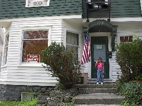 | Freshly painted and detailed entrance of 114 Ferris Place (left side of the duplex) You can see external view of Apt 1-1 with 4 large windows! (Totally cleaned on 7/31/2003) |