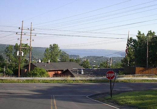 | WOW! When I looked back at the "Ithaca College" sign, look what I saw...! [Cayuga Lake and downtown Ithaca] |